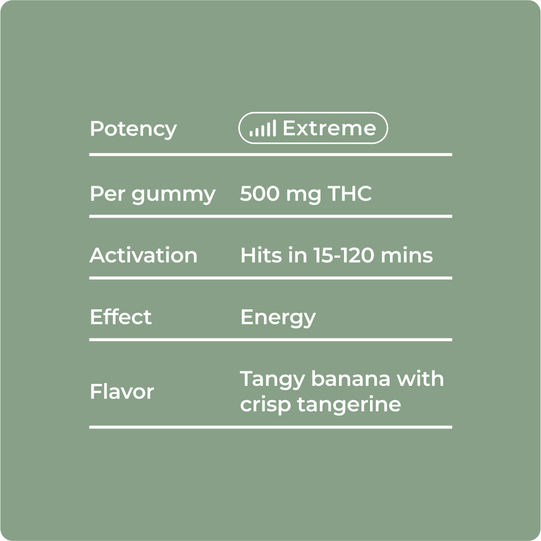 Intense tangy-tropical flavor inside a powerhouse vegan gummy, delivering sustained THCA energy. Perfect for seasoned users seeking flavorful potency and sustained uplift in every bite.
