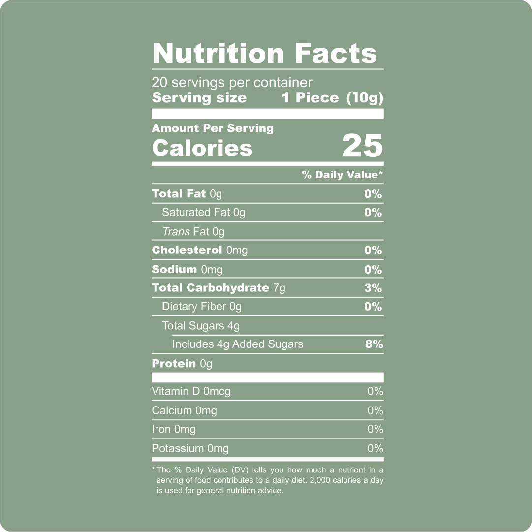 Corn Syrup, Cane Sugar, Fruit Pectin, Potassium Citrate, Organic Natural Flavoring (Organic Natural Flavors, Organic Gum Acacia) And Color, Citric Acid, And Premium Full Spectrum Hemp Extract