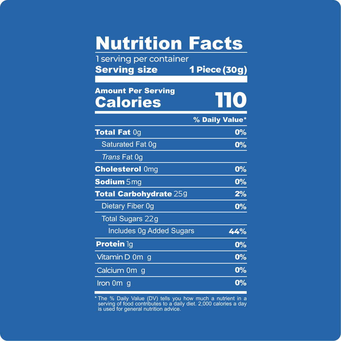 Sugar rocks (dextrose, corn syrup, sugar modified corn starch, malic acid, contains 2% or less