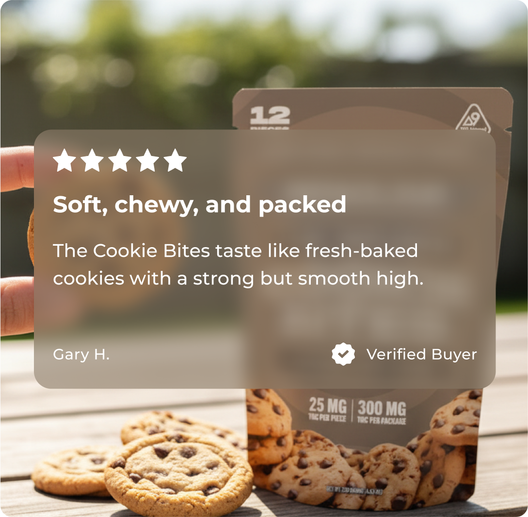 Classic chocolate chip cookies with an upgrade, a nostalgic sweet treat that delivers smooth, balanced effects in every perfectly portioned bite.