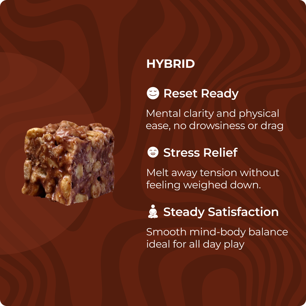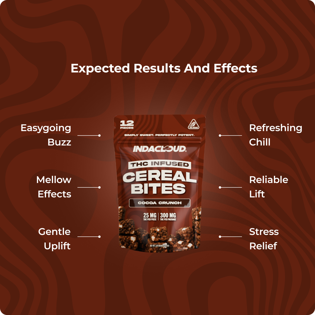 Expect a smooth, balanced high that pairs body relaxation with a gentle mood boost - ideal for unwinding after a long day or enjoying a sweet, crunchy treat with friends.