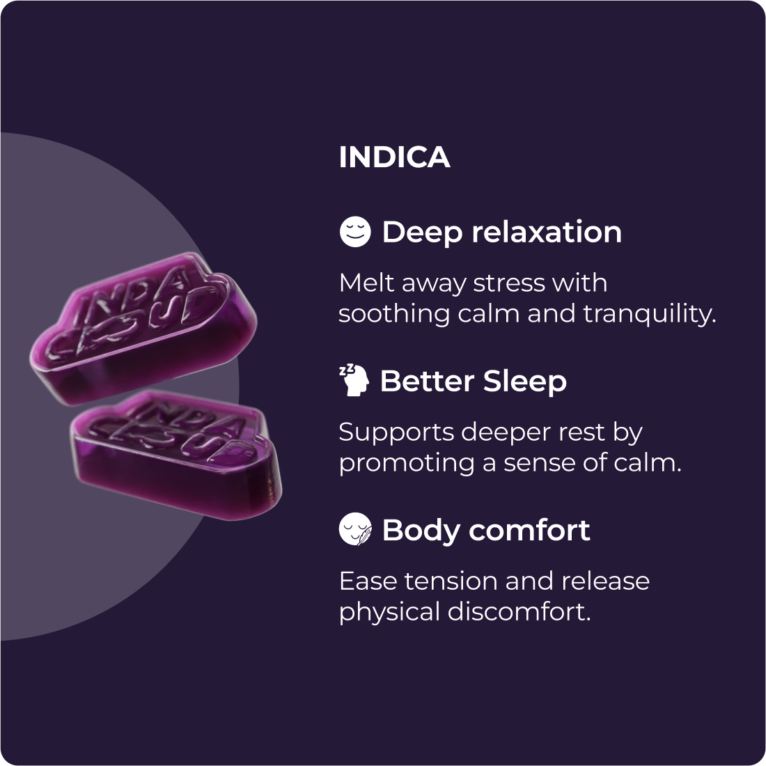 Restful, deep sleep within reach. Each Bliss gummy combines THC, CBN, melatonin, GABA, and L‑theanine for sugar free bedtime bliss without morning fog.