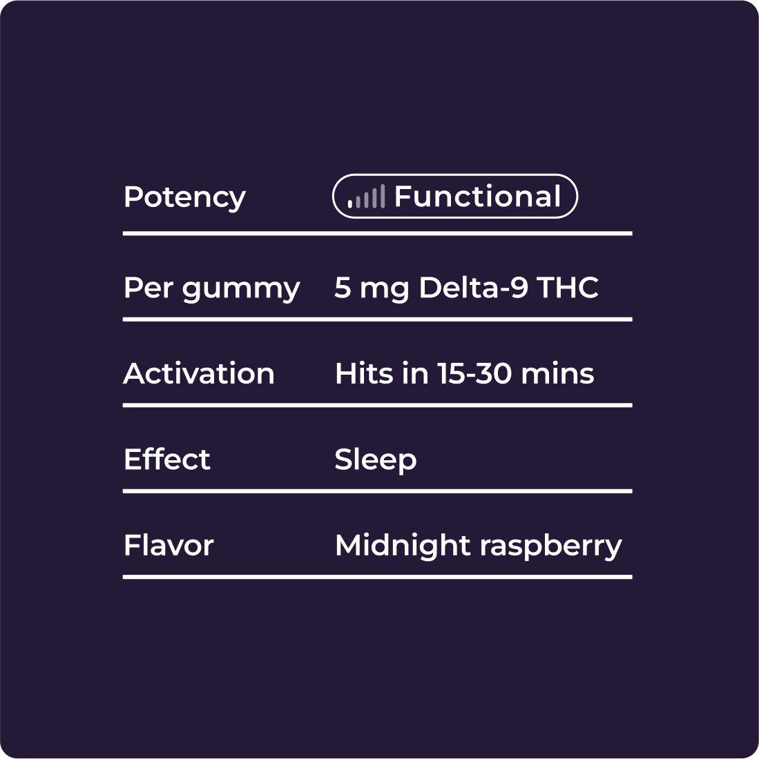 Restful, deep sleep within reach. Each Bliss gummy combines THC, CBN, melatonin, GABA, and L‑theanine for sugar free bedtime bliss without morning fog.